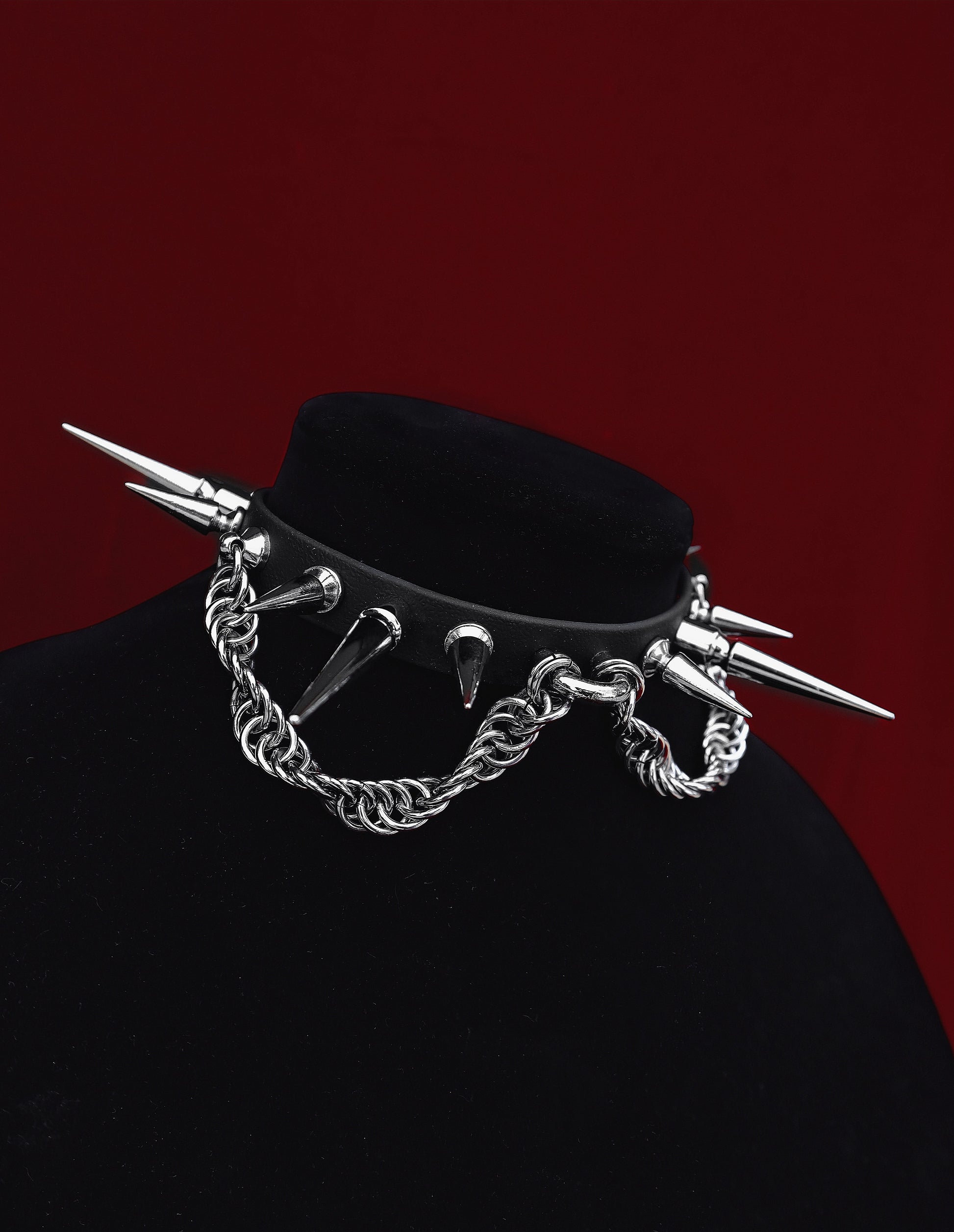 A new evolution of choker. Our Inferno Vegan Choker is a MINI-HYBRID of our classic spikes with a hint of chainmaille.