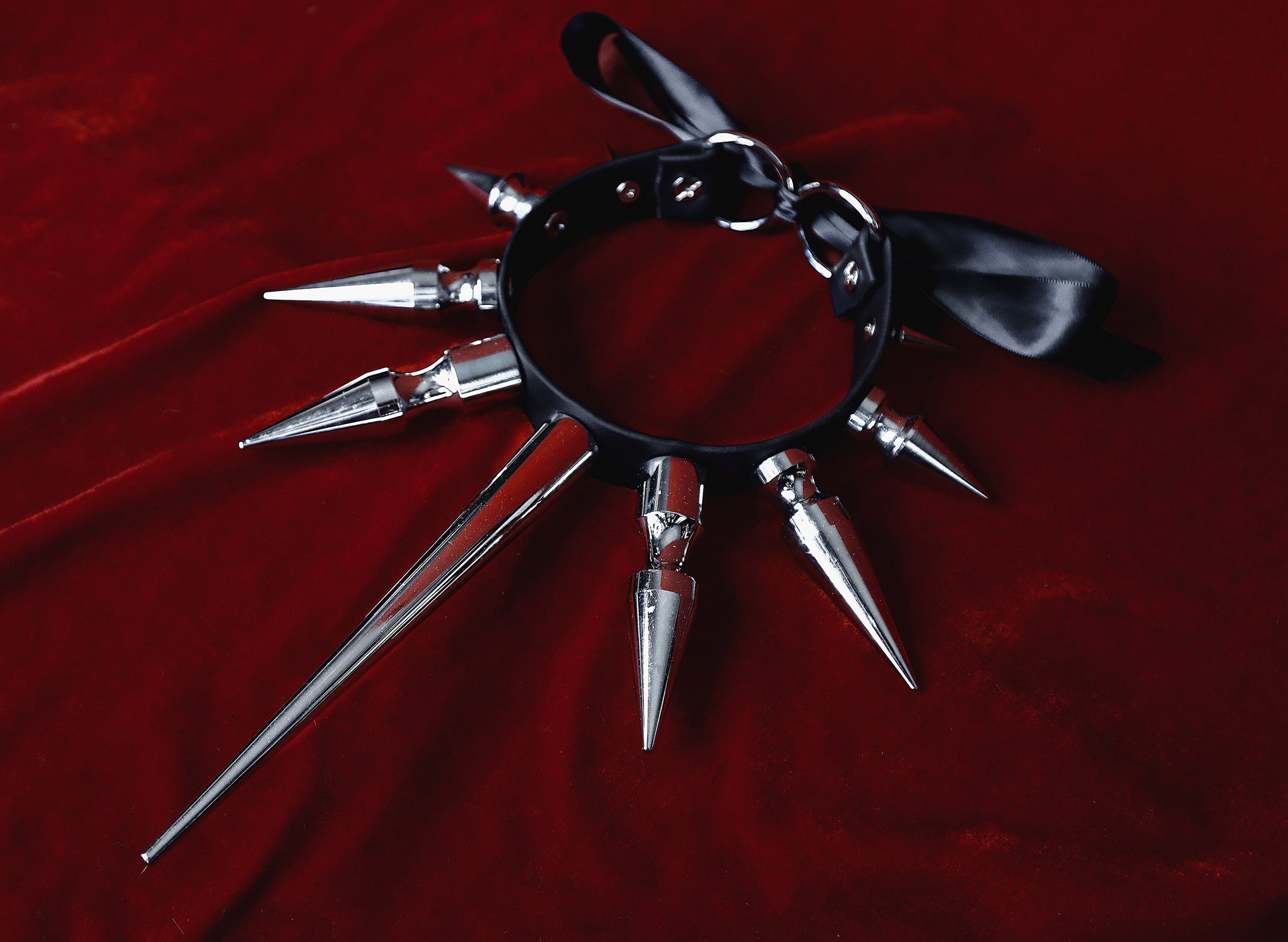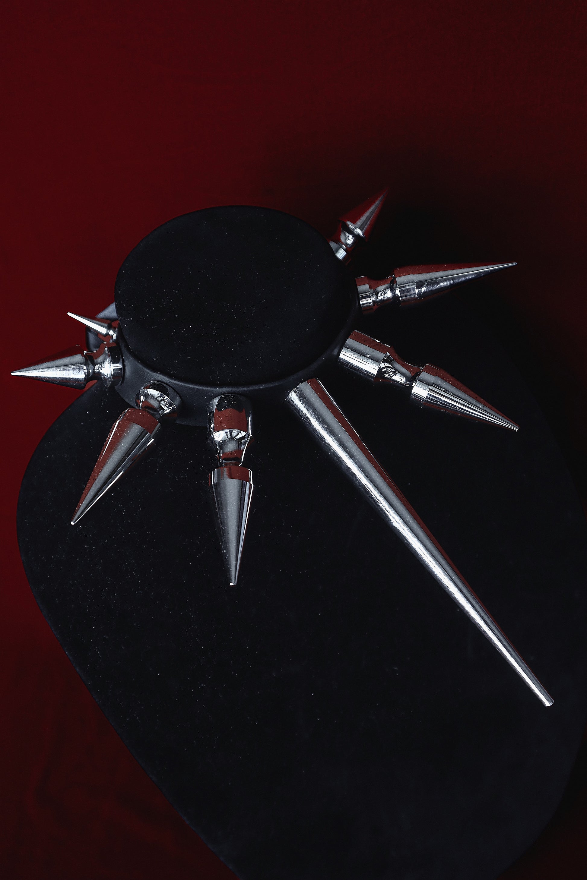 Summon your inner demon with the DRAUG Choker. Made with a sturdy Biothane vegan leather and various giant spikes.